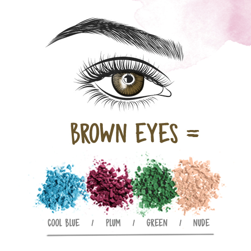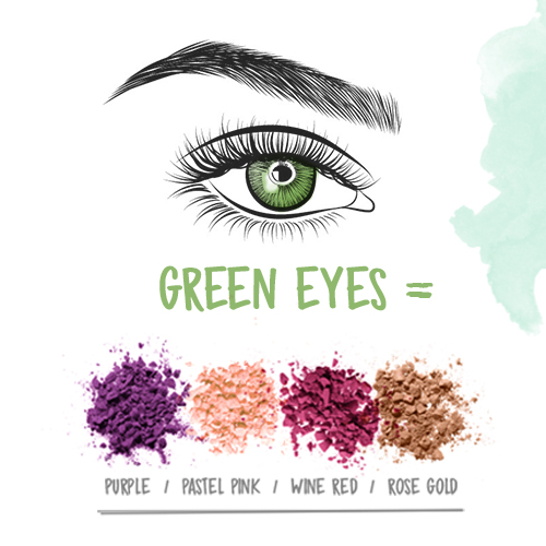 Green-eyed lovers, this ones for you. Enhance your naturally bright eyes with pinks and shimmery browns. For daytime looks, use the colours separately or blend them together to make something a little more abstract. Then take your look into the evening with high contrasting colours such as muted purple, pastel pink, wine red and rose gold.