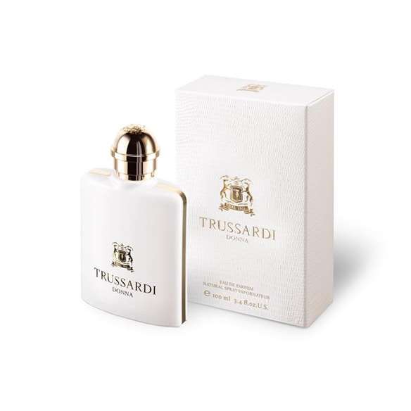 Trussardi Donna is inspired by the enveloping femininity of its bright white bottle featuring golden accents.