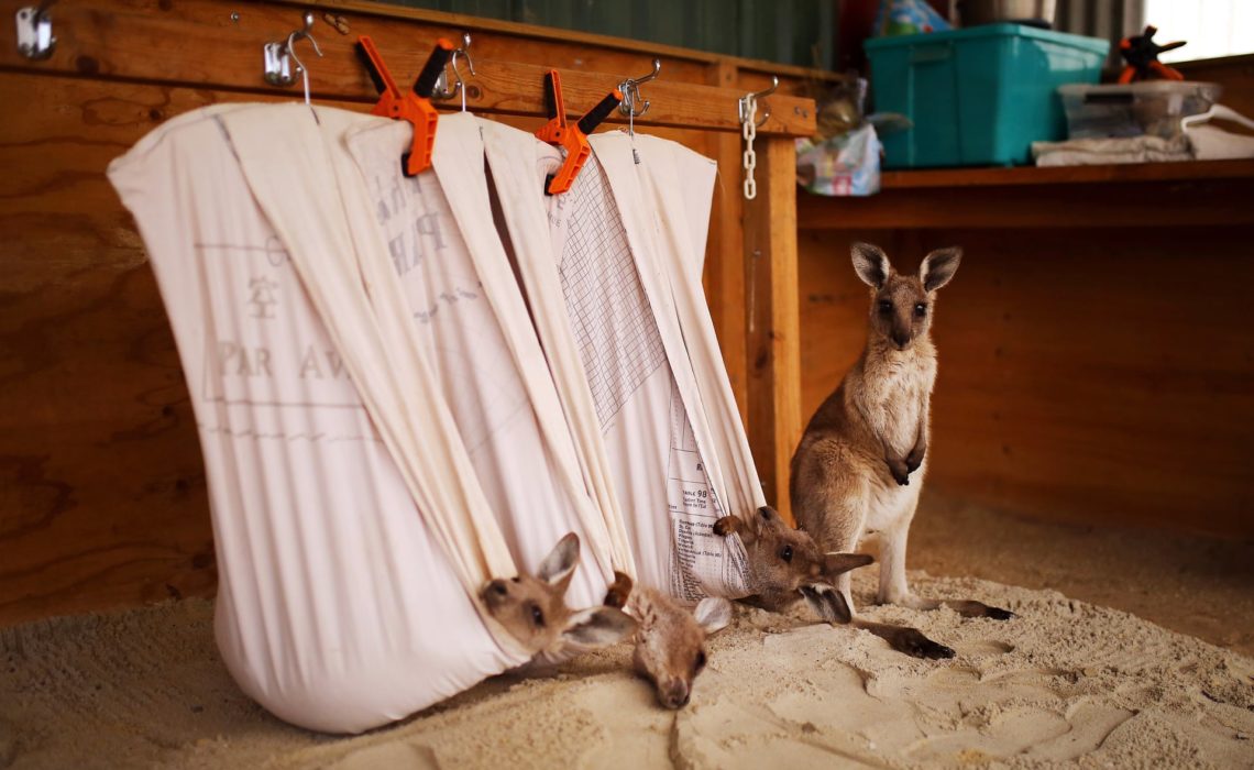 Four Eastern Grey Kangaroo joeys who were orphaned in the bush fries are recovering and being cared for by Kevin and Lorita Clapson in East Lynne, New South Wales, Australia.