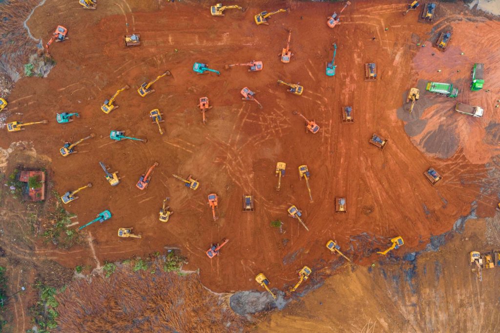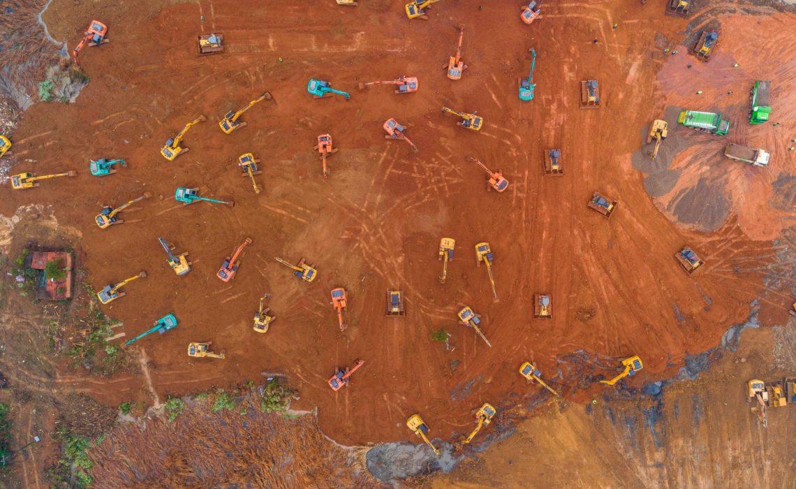 Excavators work at the construction site of a new hospital being build in Wuhan, China amid the breakout of Coronavirus. The city which is at the centre of the breakout are set to build a 1,000 bed hospital in just 10 days.